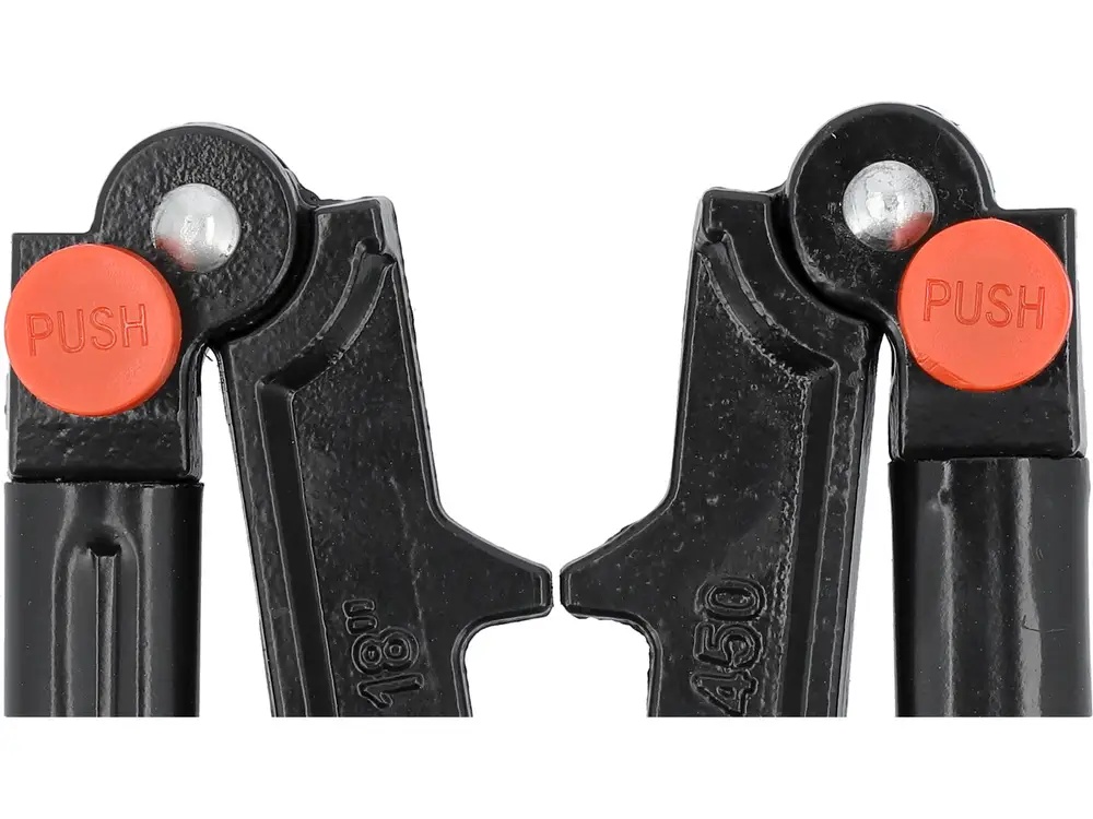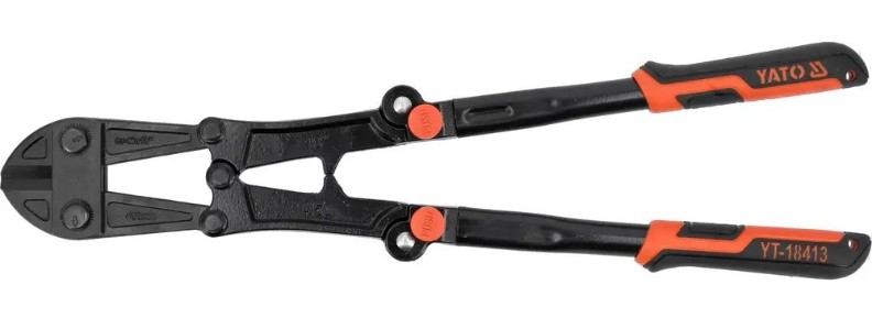 Ножницы YATO YT-18413 длиной 450 мм для резки прутков. После разблокировки и складывания шарнирных ручек длина ножниц уменьшается до 280 мм. Это позволяет им помещаться в небольшие коробки и сумки для инструментов. Двухкомпонентные ручки обеспечивают безопасную работу во время резки.