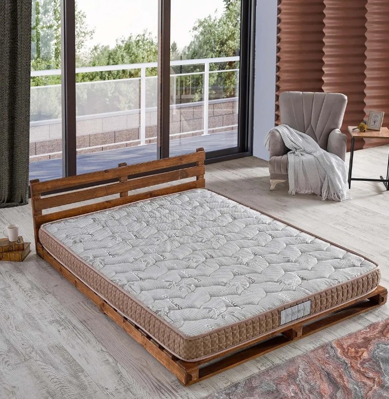 В этой модели используется пеноматериал 45 DNS толщиной 10 см. Это обеспечивает одинаковую жесткость с обеих сторон матраса. Используемый пеноматериал высокой плотности 45 DNS равномерно распределяет нагрузку по всей поверхности матраса. Матрас можно использовать с обеих сторон без каких-либо опасений.