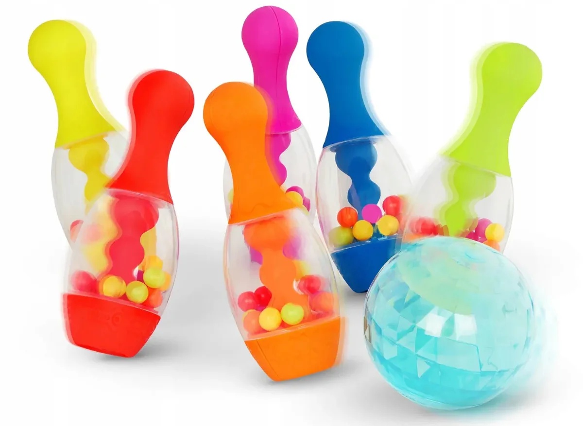 Этот набор для боулинга идеально подходит для развития моторики и координации у детей. В набор входят 6 ярких кеглей, каждая с маленькими цветными мячиками внутри, и боулинг-мяч для сбивания кеглей. Благодаря удобной подставке с ручкой, весь набор легко хранить и переносить. Он идеально подходит для активных игр и может использоваться как для индивидуальных, так и для групповых игр.