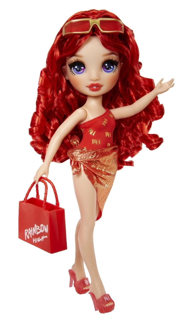 Подружки Rainbow High едут на пляж и готовы весело проводить время на золотом песке и купаться в лазурном море. И в любой ситуации выглядеть мегастильно! Встречайте новую серию Rainbow High серии "Swim & Style", состоящую из 4 куколок в ярких купальниках с летними аксессуарами и даже с парео! Собери их всех, чтобы создать свою модную и стильную радугу! Кукла Rainbow High серии "Swim & Style" - Руби Андерсон - стильная красавица с волосами и одеждой яркого красного цвета.