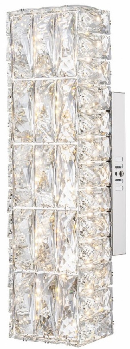 Это настенное бра сочетает в себе роскошь и современность благодаря своей хромированной структуре и изысканной композиции из резных геометрических кристаллов, которые очаровательно отражают свет. Его стилизованный вертикальный дизайн делает его идеальным для украшения прихожих, гостиных или спален с оттенком современной элегантности. Встроенное освещение создает теплое и обволакивающее свечение, что делает его идеальным украшением для тех, кто ищет сочетание функциональности и эксклюзивного дизайна.