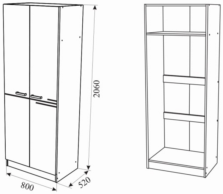 Двустворчатый шкаф Bravo подойдет для хранения верхней одежды, платьев, головных уборов и обуви. В данной модели имеется отсек со штангой для вешалок, а также полочка для головного убора или других вещей. Благодаря лаконичному дизайну, шкаф прекрасно будет смотреться в любом интерьере.