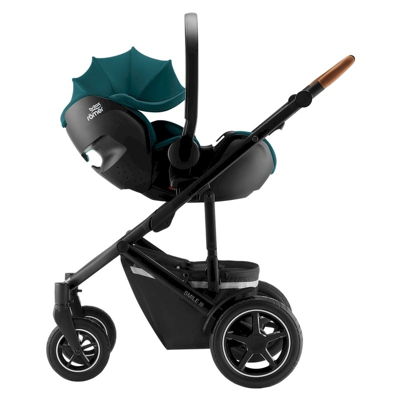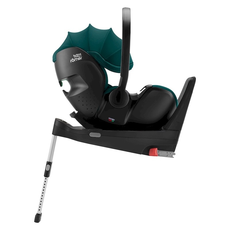Устанавливается штатным ремнем или на поворотные базы Britax Roemer, а также совместима с большинством прогулочных колясок.