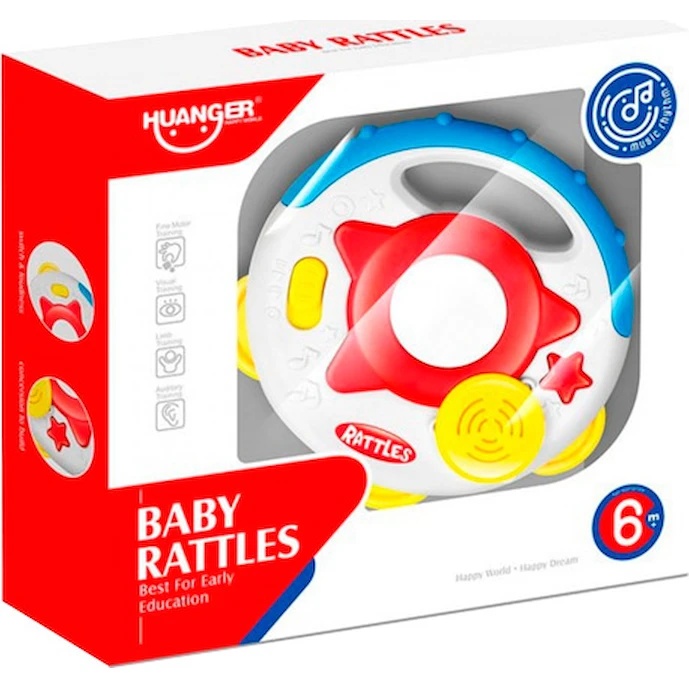 Музыкальная игрушка-погремушка "Бубен" имеет специальные музыкальные кнопочки, на которые очень приятно нажимать. В зависимости от интенсивности тряски, скорость воспроизведения также меняется. Звук регулируется. У Бубна есть специальные удобные ручки, за которые малышу удобно держать игрушку Игрушка способствует развития мелкой моторики рук и выполнена из безопасных материалов.