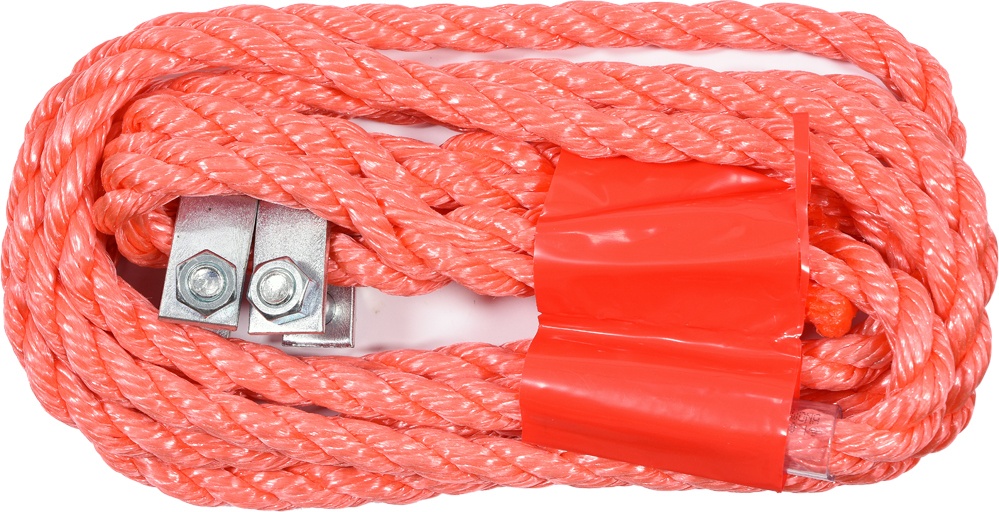 Плетеный буксирный трос с дужкой. Изготовлен из плотно скрученных полипропиленовых волокон, предназначен для буксировки автомобилей общей массой до 3500 кг. Заканчивается дужкой с обеих сторон.