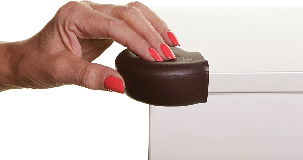 Защита на углы закруглённой формы Dreambaby изготовлены из прочного материала, который легко и надежно крепится к углам столов, полок, аквариумов и другой низкой мебели с острыми углами.