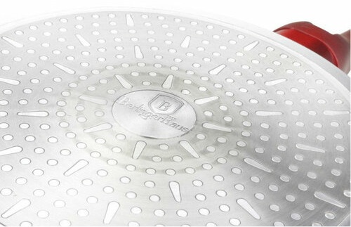 Сковорода-сотейник Berlinger Haus Burgundy Metallic Line с крышкой. Диаметр - 24 см. Тело сковороды изготовлено из кованого алюминия c очень высокой теплопроводностью, сверху имеет мраморное покрытие.