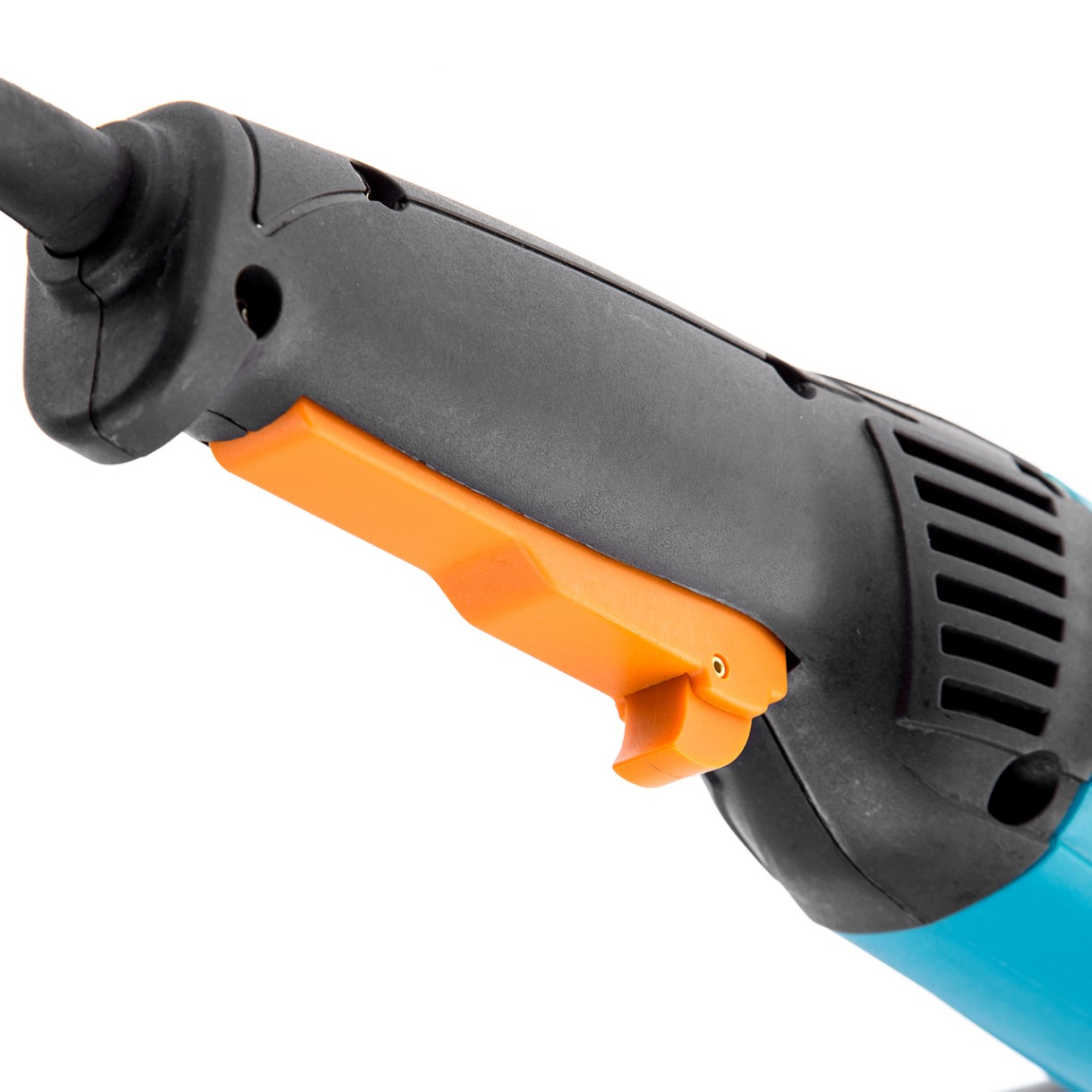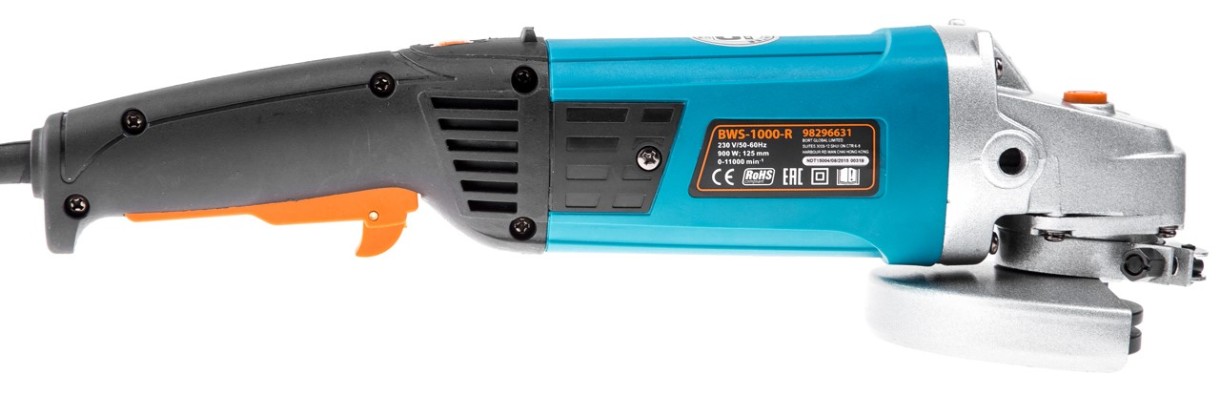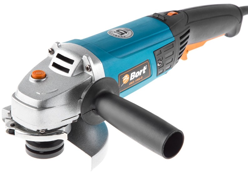Шлифовальная угловая машина Bort BWS-1000-R — мощная болгарка с диаметром диска 125 мм. Она прекрасно подойдет для работы в домашней мастерской или на даче. При достаточно большой мощности, сохраняется небольшой вес инструмента и сравнительно небольшие размеры. УШМ имеет регулировку скорости, что позволяет работать в различных условиях с разными материалами. Для удобной и быстрой замены диска установлена функция блокировки шпинделя. Также, вы можете регулировать положение защитного кожуха без ключа. Вместе с самим инструментом поставляется не только боковая рукоятка, защитный кожух и ключ, но и дополнительный комплект щеток.