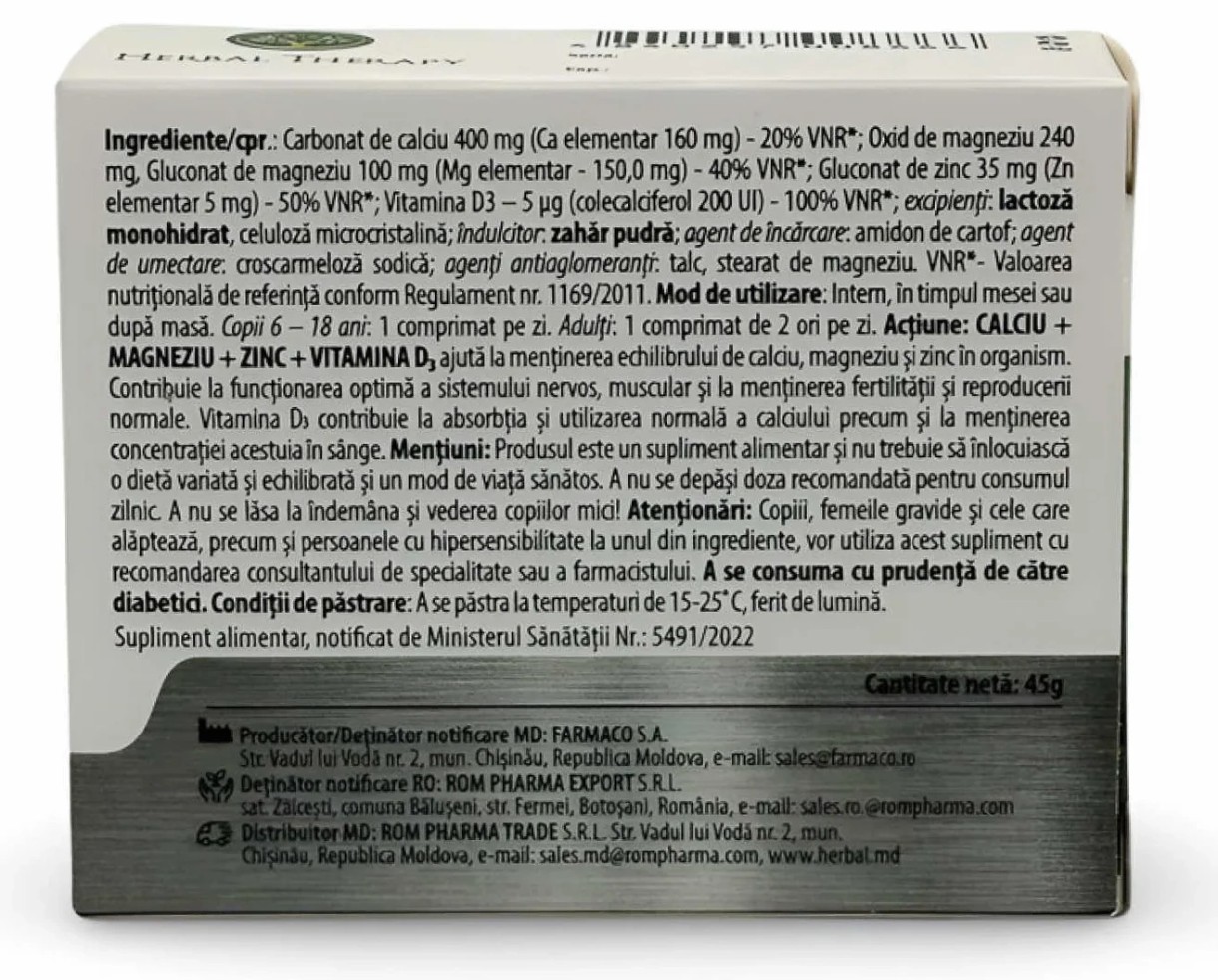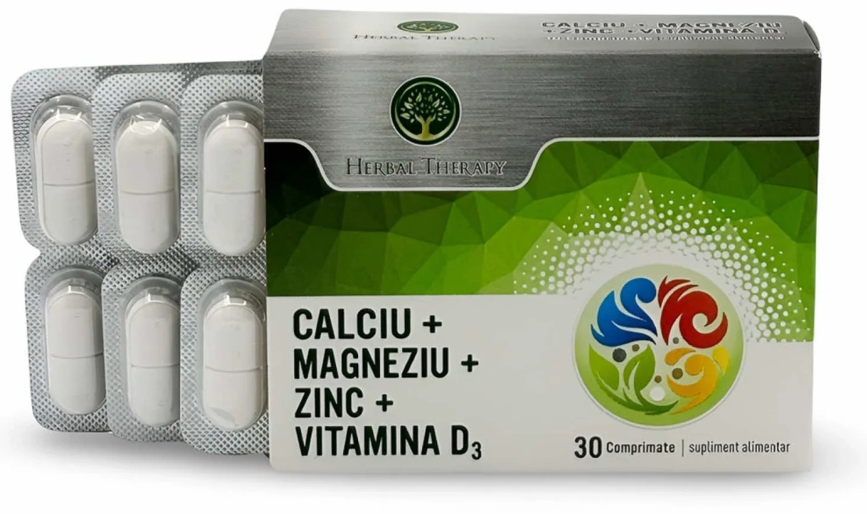 Витамины Herbal Therapy Calciu + Magneziu + Zinc + Vitamina D3 30tab