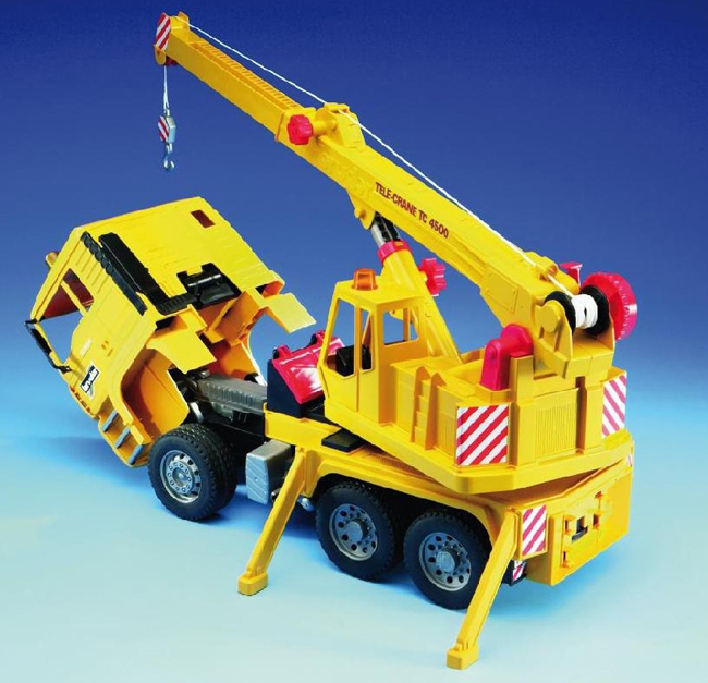 Хотите удивить своего ребенка? Полнофункциональный автокран MAN не только удивит, но и принесет массу положительных эмоций. Получив такую спецтехнику в подарок, в глазах мальчишки вы прочтете восхищение. Кабина водителя опрокидывается и открывает вид на двигатель. Зеркала кабины можно сложить. Стрела с крюком выдвигается, платформа крана поворотная. Лебедка является полностью функциональной. Кнопка разблокировки ускоряет опускание грузов. Четыре опоры придают крану устойчивость. Полную картину создает имеющийся ящик для инструментов.