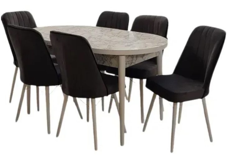 Комплект для столовой Magnusplus Arya Oval Carara 170/130x80x77H + 6 Chairs Dark Grey фото №1 — интернет-магазин Desire.md