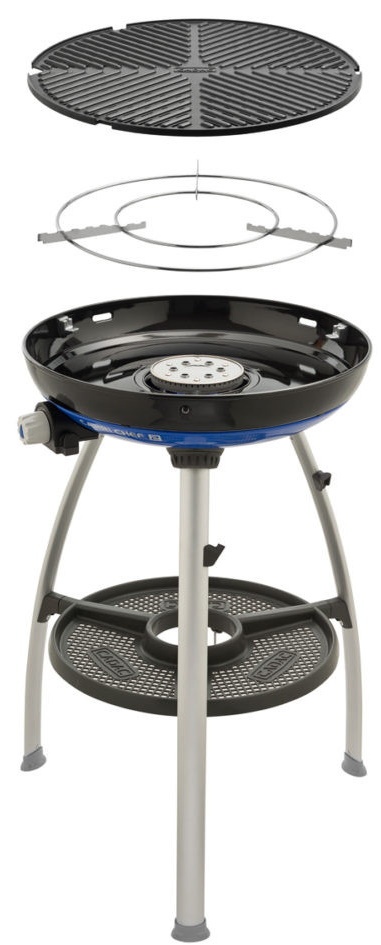 Гриль Carri Chef 2 прост в использовании и легко собрать. Он имеет простые настройки, легко моется и компактен, поэтому вы можете хранить его где угодно без проблем. Прочное кольцо из нержавеющей стали с пьезоподжигом обеспечивает точный контроль температуры и, как следствие, идеально приготовленную на гриле посуду. Инструмент также снабжен крышкой и может использоваться как в духовке, так и в качестве гриля. Крышка имеет чувствительный температурный индикатор, который позволит вам контролировать уровень жарки и выпекания.
