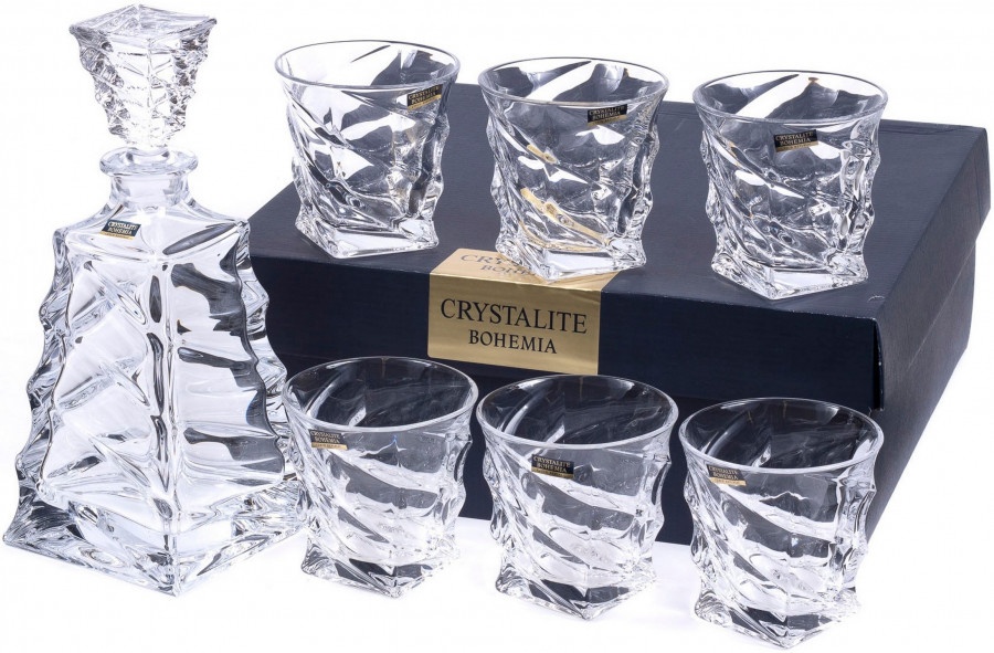 Crystalite Bohemia, «Casablanca» Whisky — элегантный набор для подачи виски, коньяка и других крепких напитков. Он состоит из шести тумблеров и декантера, выполненного в форме классического графина с пробкой.
