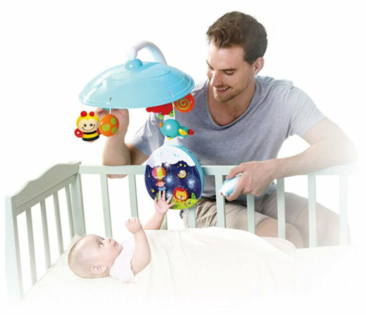 Отличной находкой для молодых родителей и их новорожденных деток является Детская Карусель-мобиль Hola Toys 1105. Эта игрушка подходит для малышей уже с самого их рождения. Она будет оберегать спокойствие ребенка и обеспечит крепкий и сладкий сон. Эта карусель обязательно привлечет внимание малыша, так как оснащена множеством разнообразных ярких и необычных игрушечек, которые к тому же двигаются в сопровождении нежной мелодии.