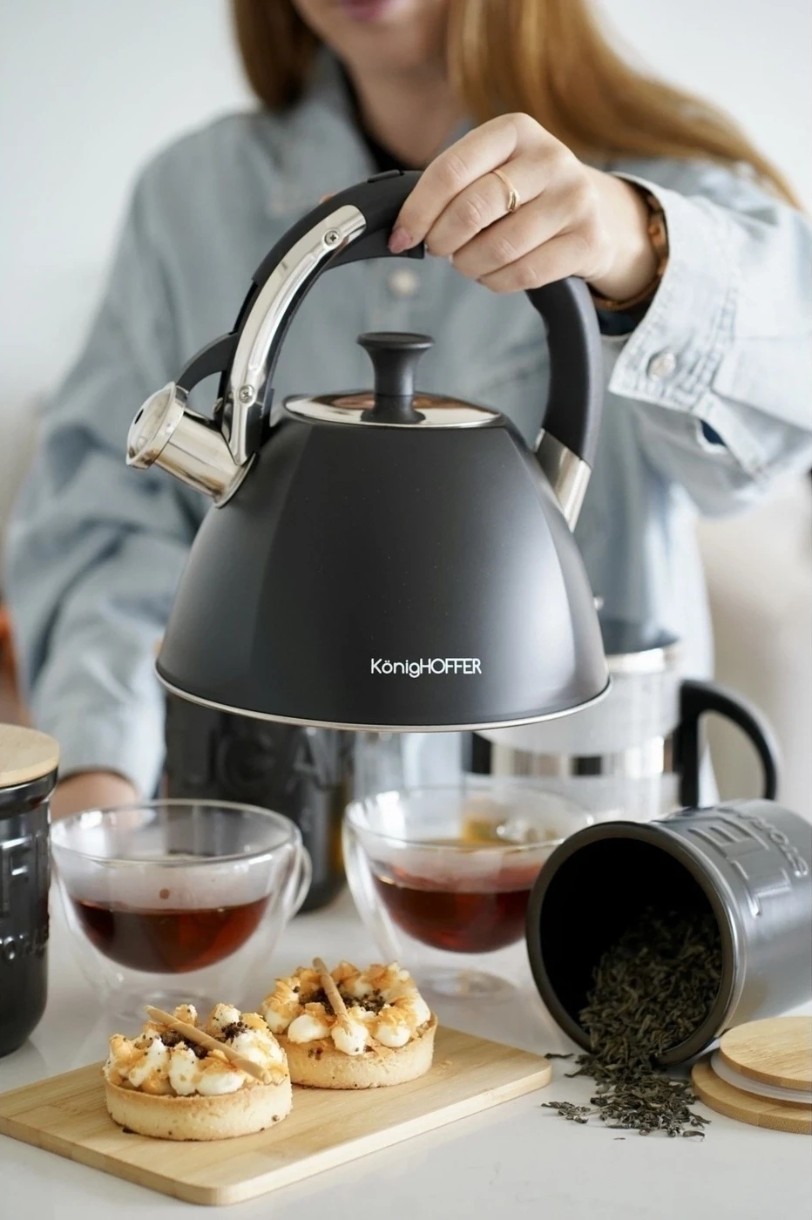 Традиционный чайник Konighoffer Firenze II 2,5 л изготовлен из нержавеющей стали. Вы без труда позаботитесь о его уходе, удалите накипь изнутри и не будете беспокоиться о долговечности продукта. Модель разработана с расчетом на многолетнее использование и подчеркивает элегантность дизайна вашей кухни.