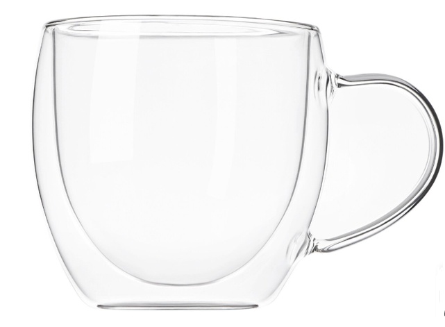 Набор чашек с двойными стенками. В набор входят две чашки объемом по 250 мл. Чашки изготовлены из термостойкого боросиликатного стекла.