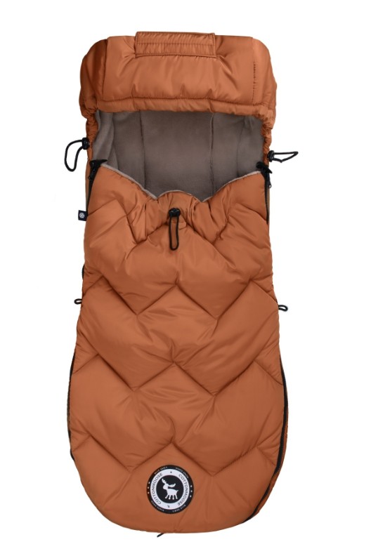 Капюшон спального мешка глубокий, регулируемый и профилированный, поэтому его можно легко подогнать под голову ребенка, плотно укутав его. Дополнительно капюшон можно свернуть и прикрепить к спинке коляски. Благодаря отверстию в верхней части капюшона можно регулировать высоту спинки, не снимая свернутый капюшон. Капюшон имеет шнурок, позволяющий регулировать его. На передней части спального мешка имеются завязки, позволяющие затянуть их и точнее укутать тело. Внизу использованы широкие складки, обеспечивающие дополнительное пространство для обуви, а специальная подкладка обеспечивает защиту от загрязнения обуви.