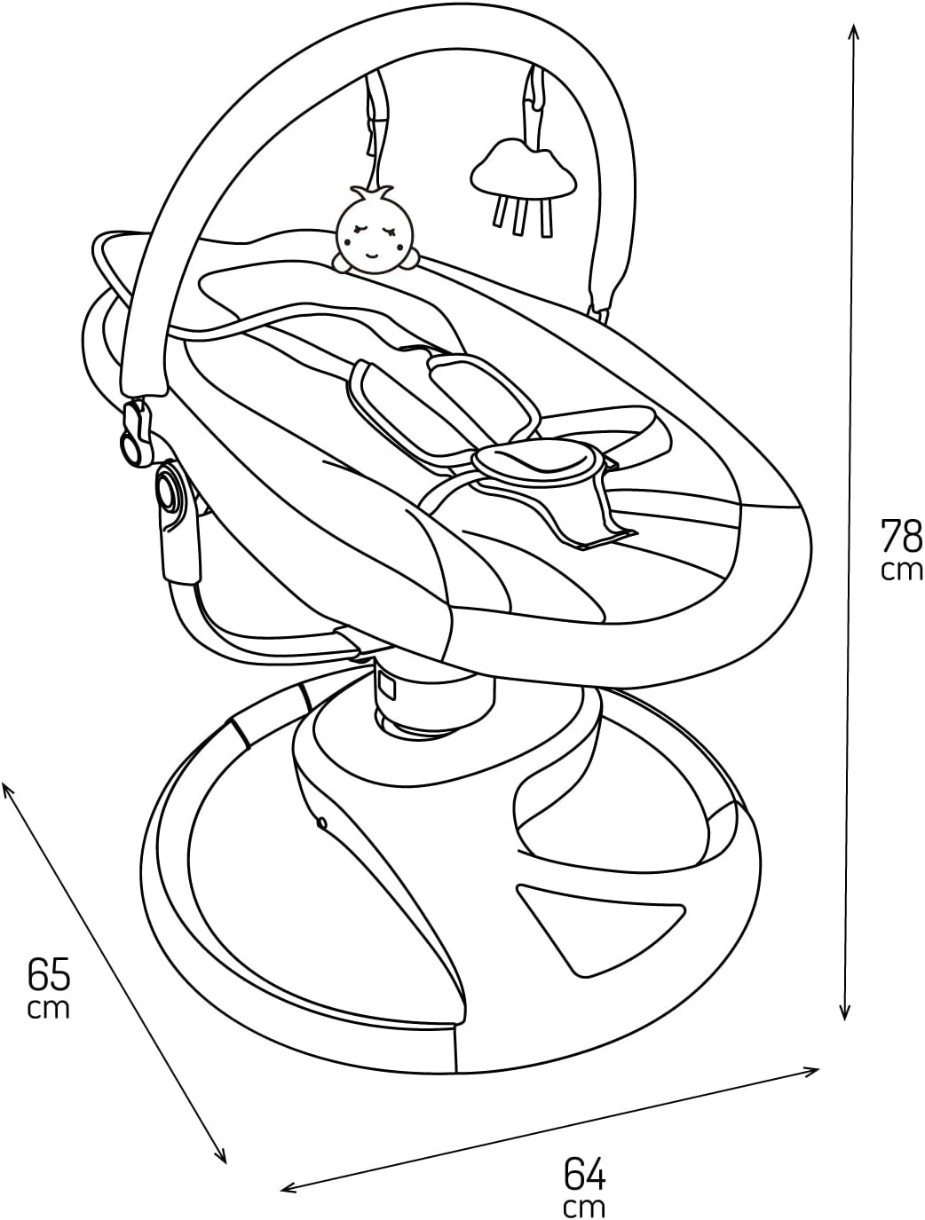 Наша детская качалка MoMi PEARL имеет два режима качания: из стороны в сторону и плавное вращение. Конечно же, её можно полностью остановить. Оба режима качания имеют 5-ступенчатую регулировку скорости для адаптации интенсивности к потребностям малыша и таймер для автоматического отключения по истечении заданного времени.