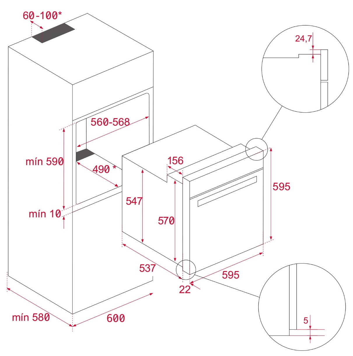 Размеры ниши для встраивания (ВхШхГ)59x56x49 см