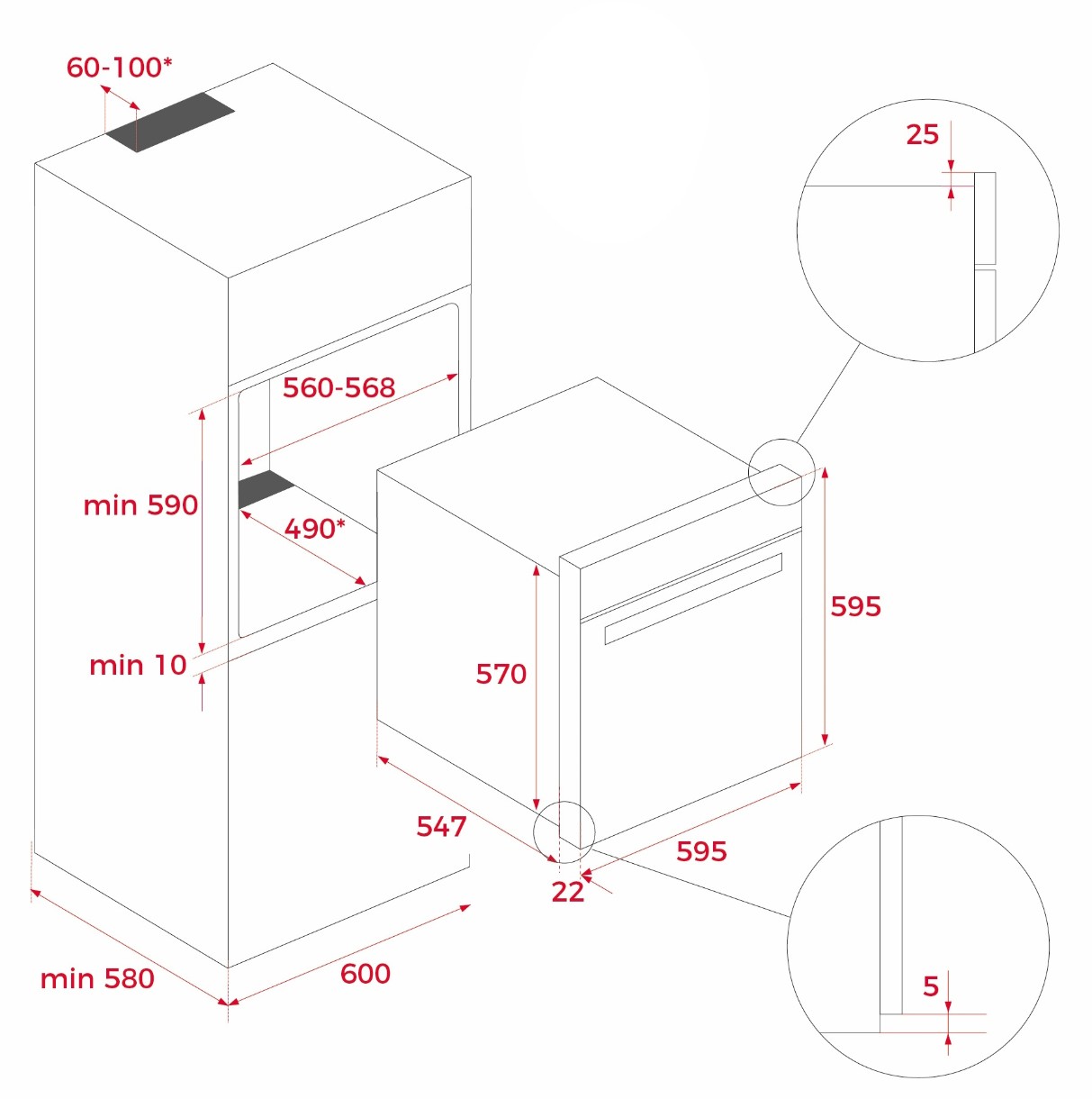 Размеры ниши для встраивания (ВхШхГ)59x56x49 см