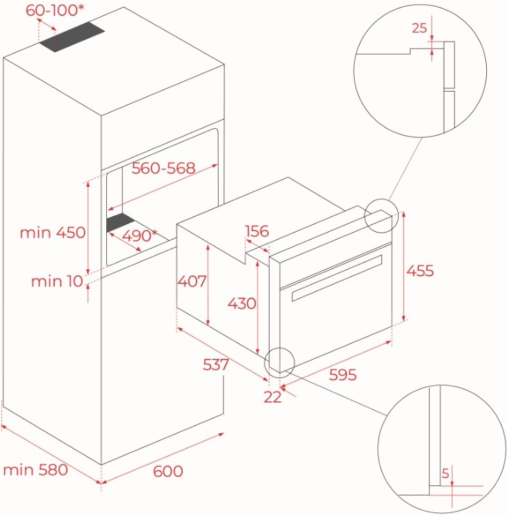 Объём духовки44 л
