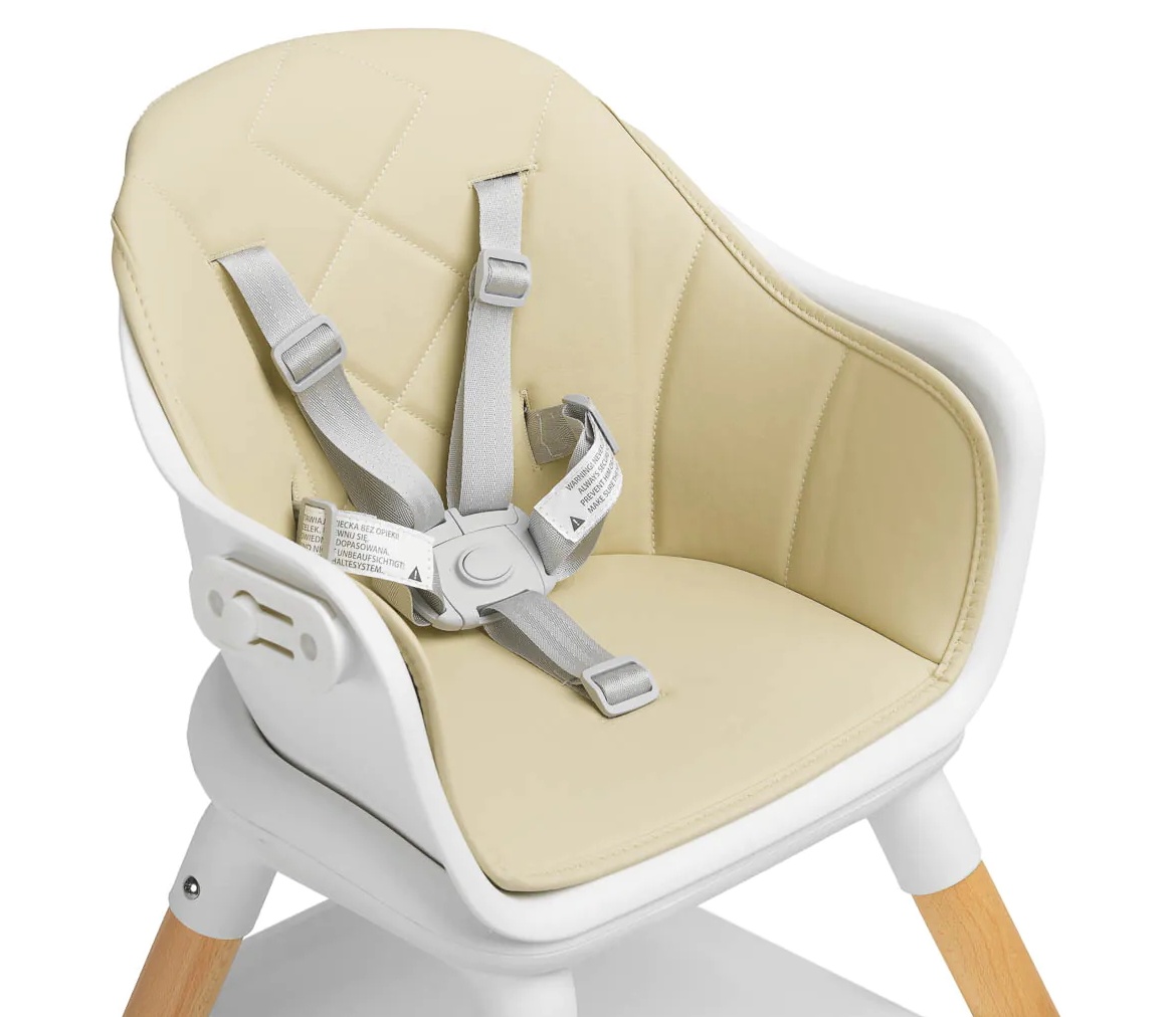 Bravo — стульчик для кормления, который позволяет маленьким детям легко сидеть вместе со взрослыми. Элегантный внешний вид и нежные цвета понравятся не только поклонникам скандинавского дизайна. Bravo можно использовать по-разному: с функцией детского стульчика, низкого сиденья и табурета (высокого и низкого). Имеет два уровня регулировки подножки (16 см и 24 см), что обеспечивает комфорт детям старшего возраста. Во время кормления профилированный лоток гарантирует, что ничего не прольется на пол, а обивка из экокожи и пластиковое сиденье способствуют быстрой и удобной уборке. Устойчивость обеспечивают четыре ножки, полностью изготовленные из массива дерева.