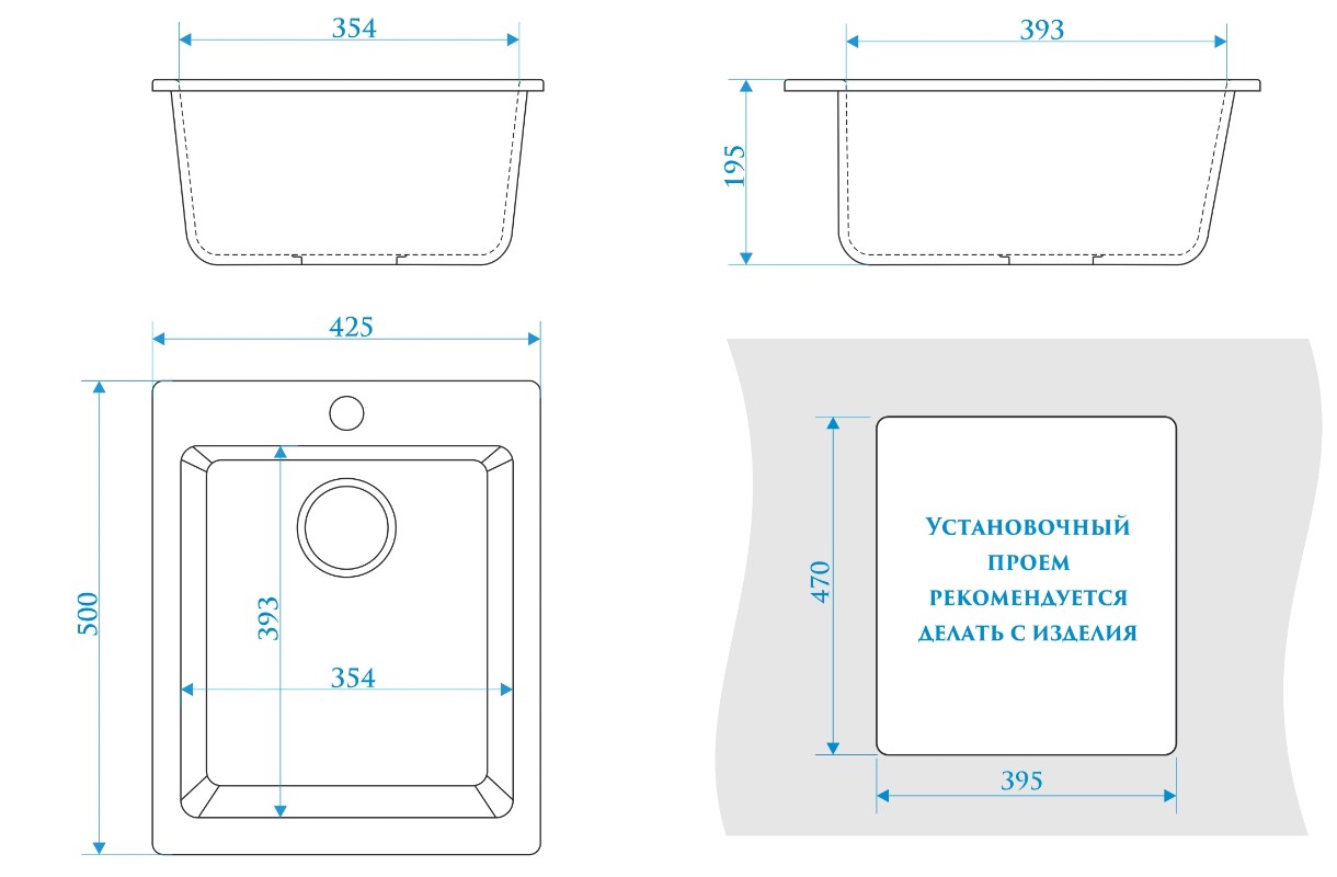 Размер мойки500x425 мм