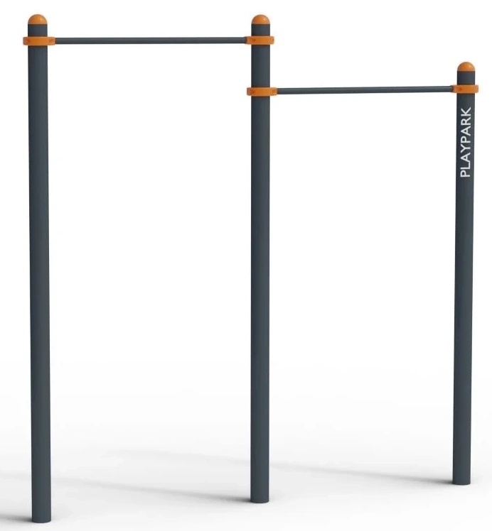Материалы: металлические трубы Ø89мм / Ø34мм с порошковым покрытием. Элементы соединяются металлическими хомутами на болтах и регулируются по высоте. Болты - оцинкованы. Конструкция прочная, антивандальная. Комплекс бетонируется.