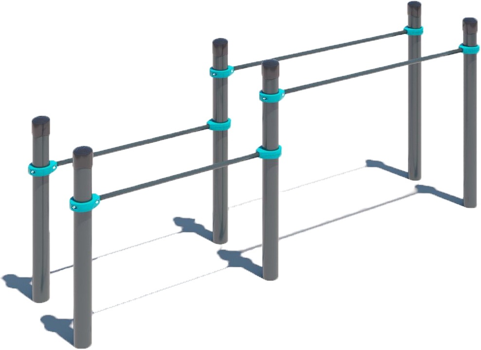 Брусья двойные разноуровневые подходят для тренировок различных групп мышц: грудь, руки, пресс, а также помогают отрабатывать различные стойки и другие статические элементы.