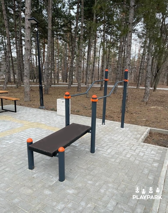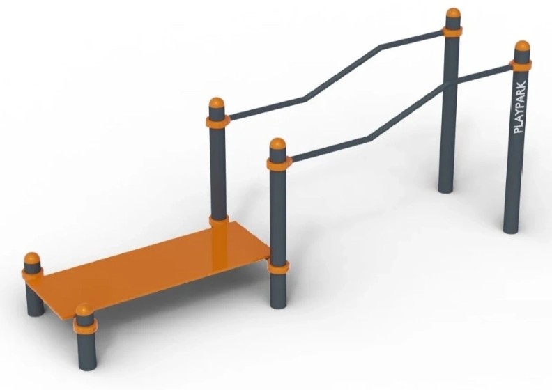 Спортивный комплекс брусья в подъем со скамьей PD-02 из серии ПараВоркаут (PARAWORKOUT). Тренажер доступен и безопасен для уличных тренировок для людей с ограниченными возможностями. Брусья и скамья позволяют делать зашагивания, разрабатывать шаг и отжиматься.