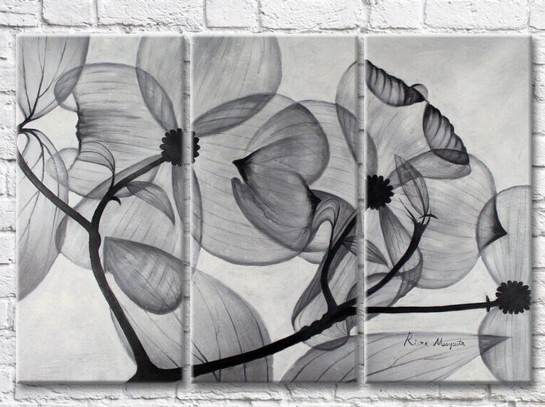 Картина Magic Color Transparent flowers Black and White on a Gray background (3499090)
