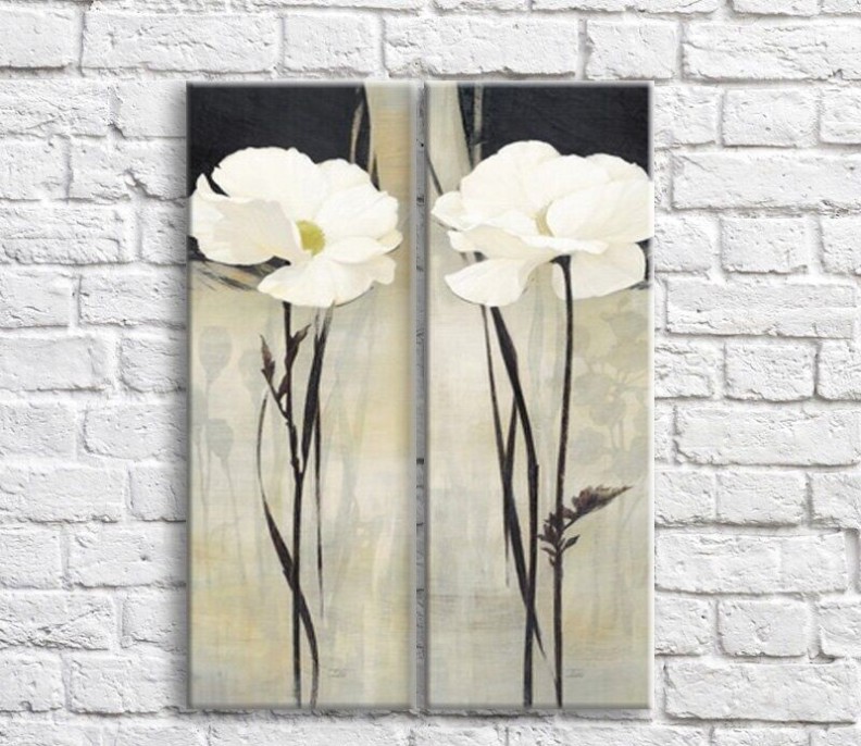 Картина Magic Color White poppies on a Black background, abstraction, diptych (3467637)