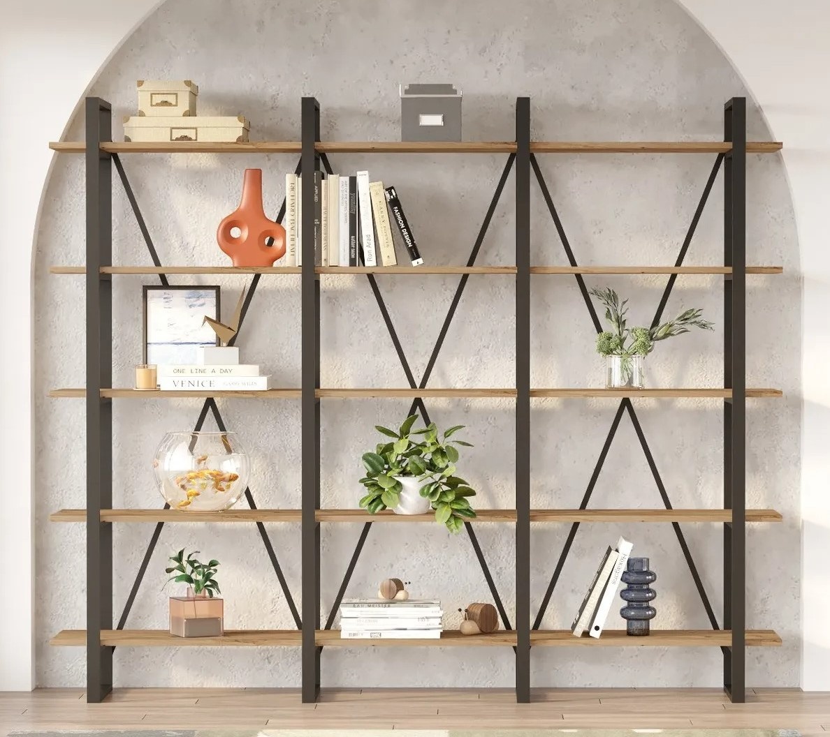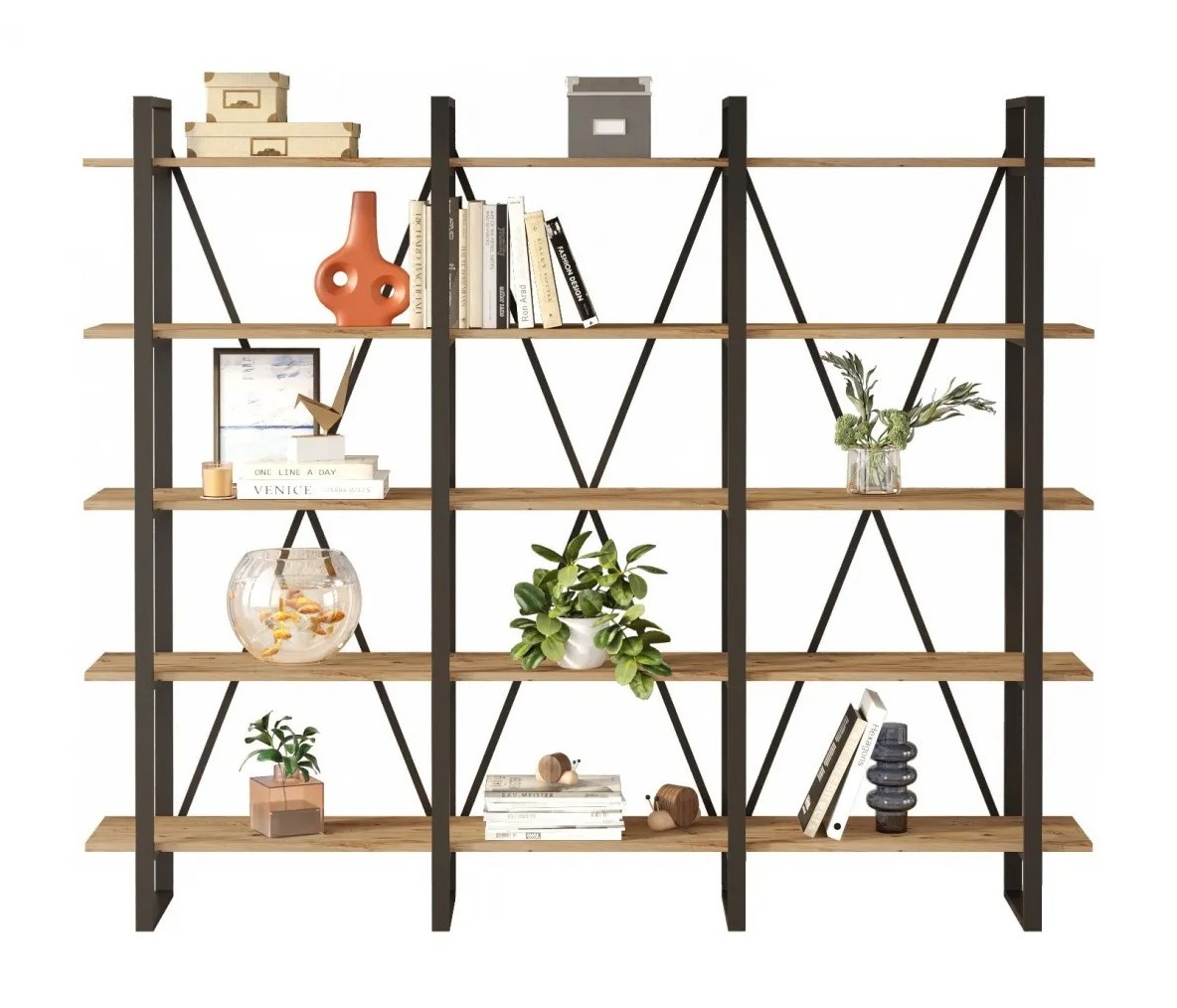 Стеллаж Trendy ML4-A Black/Pine Atlantic 180x219.6x34cm GTR000496