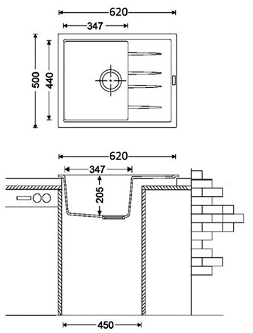 Мойка изготовлена из композитного материала, состоящего на 80% из натурального гранита, дополненного полимерным связующим.
