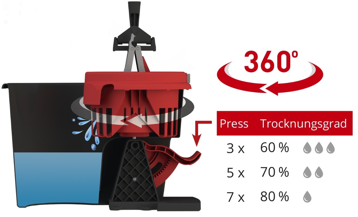 Click N TWIST - Профессиональный набор, который также подходит для домашнего использования, с вращающимся мопом, педалью и телескопической ручкой с магнитной фиксацией в вертикальном положении.