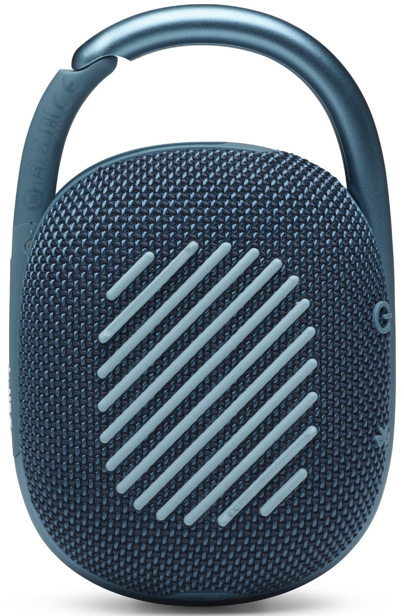 В ультрапортативном и ультрасовременном корпусе JBL Clip 4 удачно сочетаются разноцветная ткань и выразительные детали — колонка выглядит так же великолепно, как и звучит.