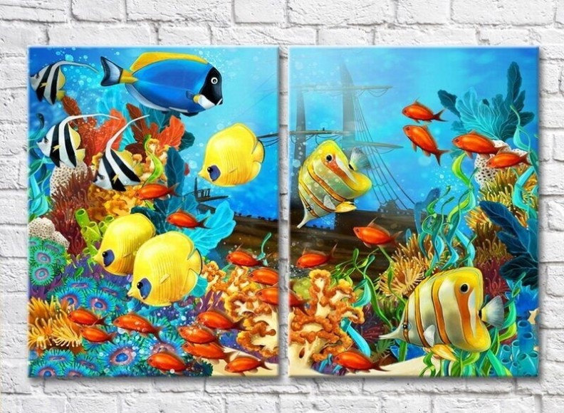 Картина ArtPoster Colorful fish and a sunken ship (3453792)