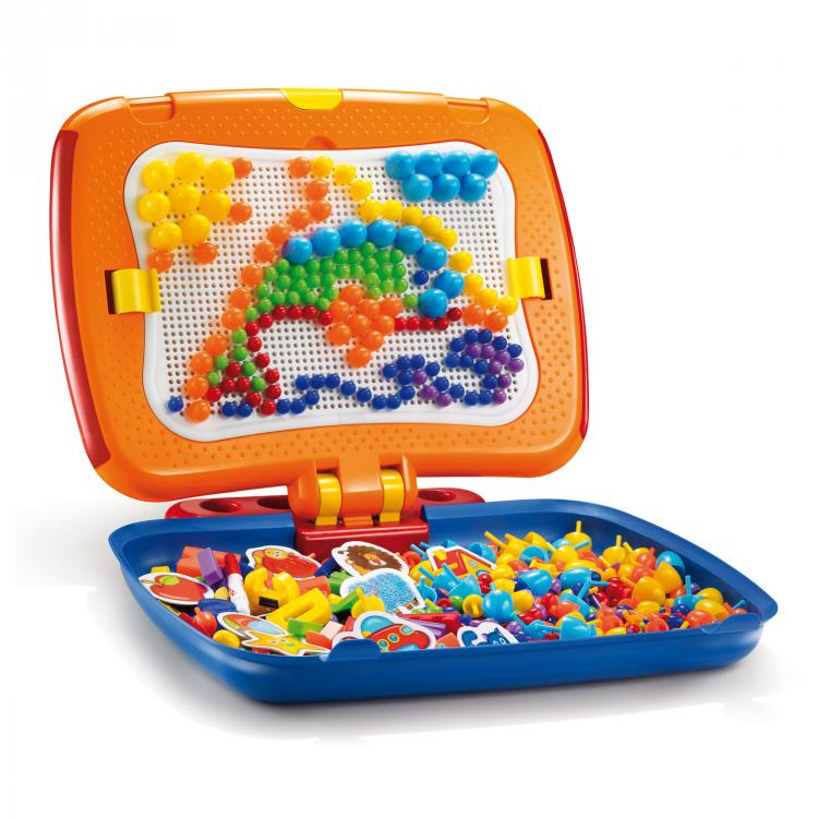 Набор мозаики Quercetti "Combi" - это яркая и увлекательная развивающая игра, с помощью которой ребенок сможет собрать из мозаики различные картинки и познакомится с буквами.