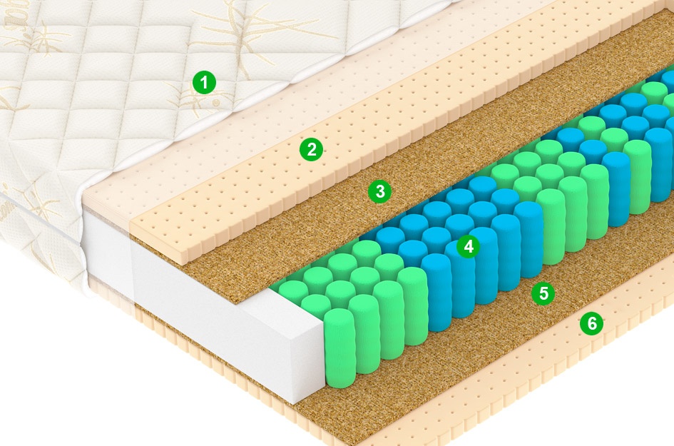 Универсальная модель для тех, кто ищет компромисс между жесткостью и мягкостью. Идеальный баланс латекса, кокоса и пружинного блока обеспечит максимальное удобство сна. Количество пружин (на м2) - 256.