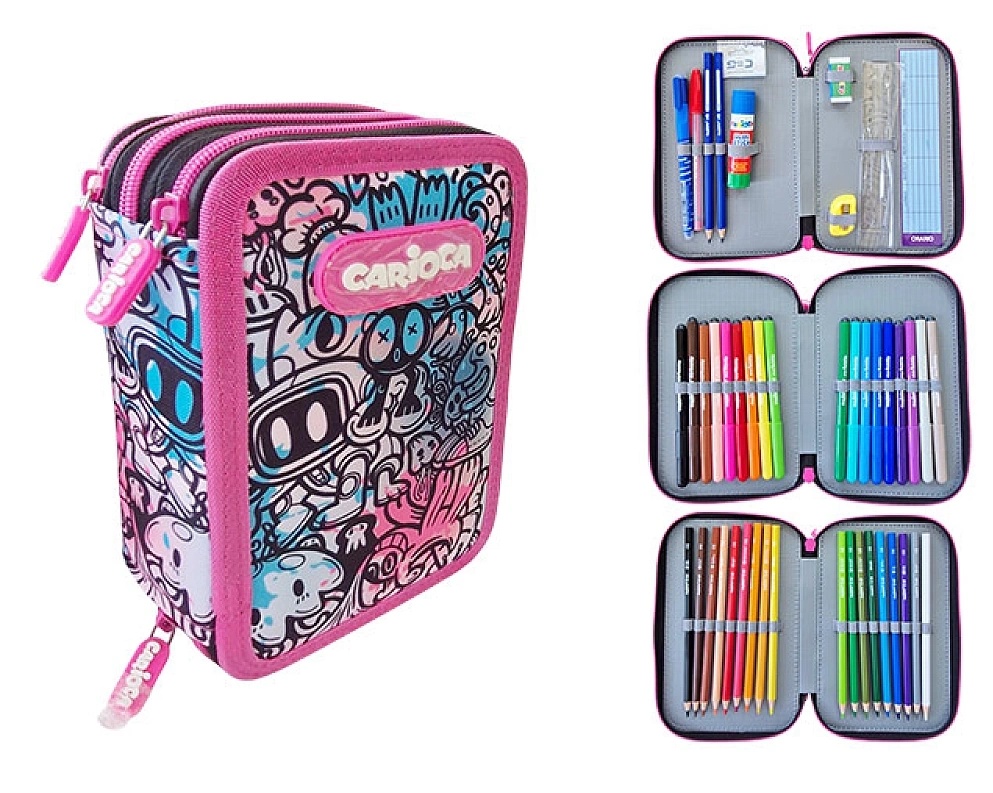 Школьный пенал Carioca Comics Pink с аксессуарами, тканевый (56868)