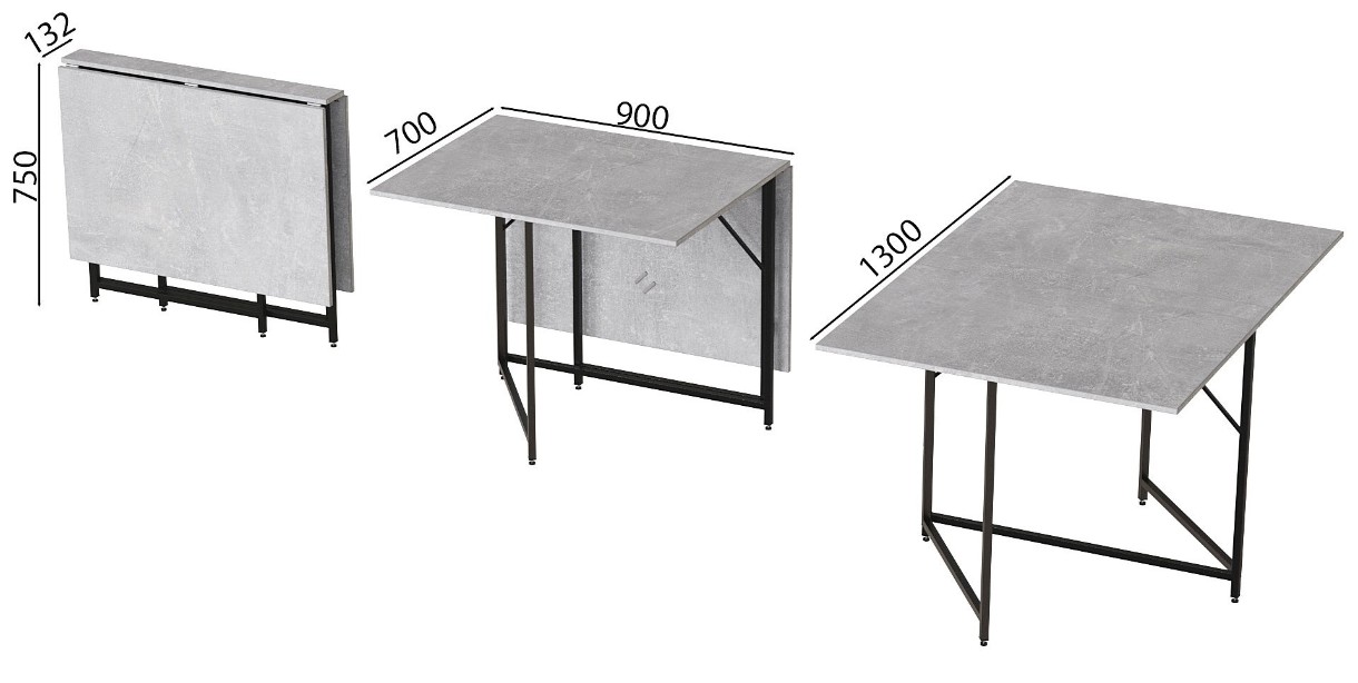 Обеденный стол Ferrum-Decor Woody 75x130x90 Beton/Black (VOODY3000) фото №7 — интернет-магазин Desire.md