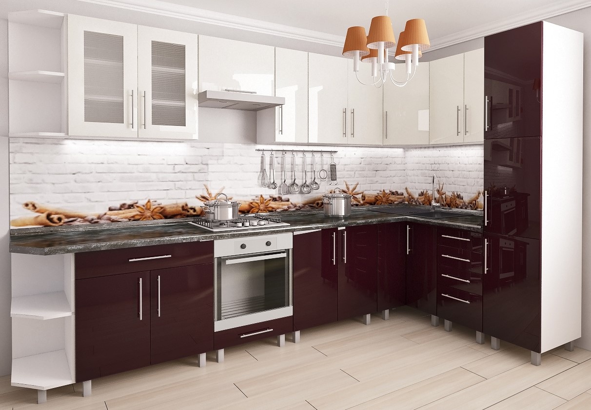 Кухонный гарнитур Bafimob Corner (High Gloss) 3.4x1.7m White/Bordo