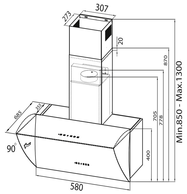 Управление вытяжкой осуществляется посредством сенсоров расположенных на фасаде, либо посредство пульта дистанционного управления.