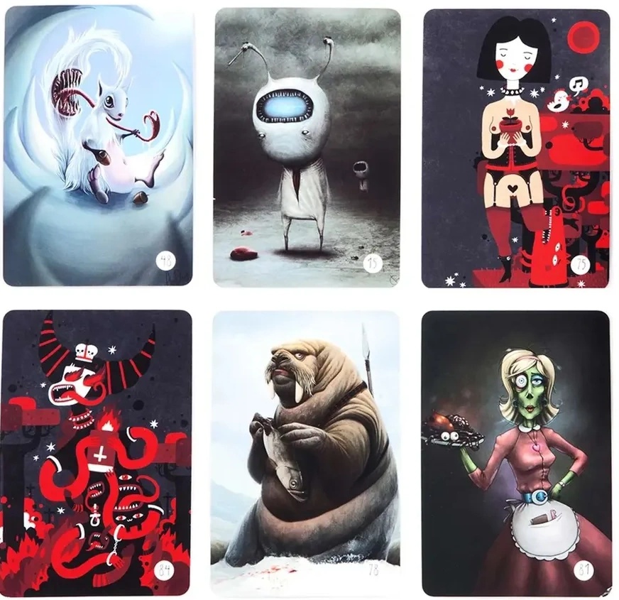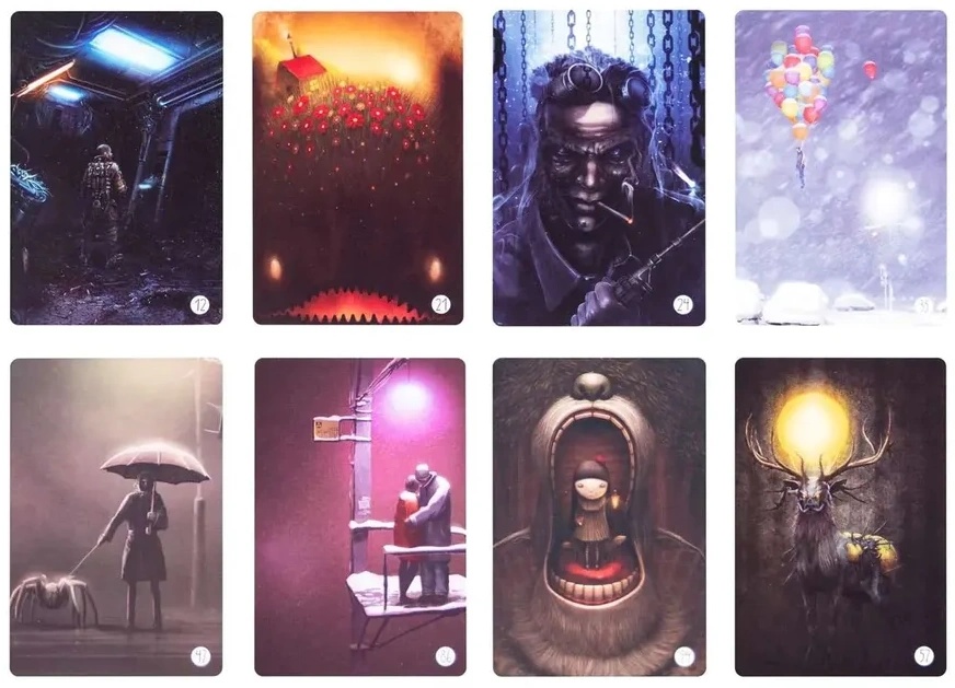 С предупреждениями закончили — можно переходить к сути. «Химера» — дополнение не для веселой компании, смеяться здесь особо не над чем. Скорее вас ждут ассоциации типа «в последний путь» и «после точки невозврата». Но общая мрачность колоды делает ее отличным выбором для опытных игроков — чтобы придумать ассоциацию к карточке, нужно присмотреться к деталям и суметь разглядеть историю за темными красками. Кое-кто намеренно усложняет задачу еще больше, призывая других игроков подбирать исключительно позитивные ассоциации. Сложно? Несомненно. Но и столь же интересно!