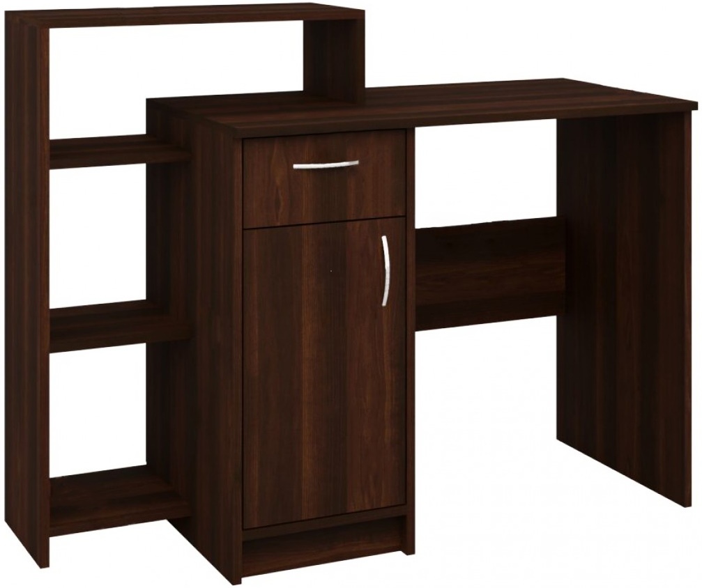 Классический образец письменного стола Кредо изготовлен из высококачественных материалов. Изделие выполняет функции компьютерного и письменного стола одновременно. Конструкция данной модели предусматривает широкую столешницу, вместительные ящики, а также открытые полочки для размещения книг и тетрадей.
