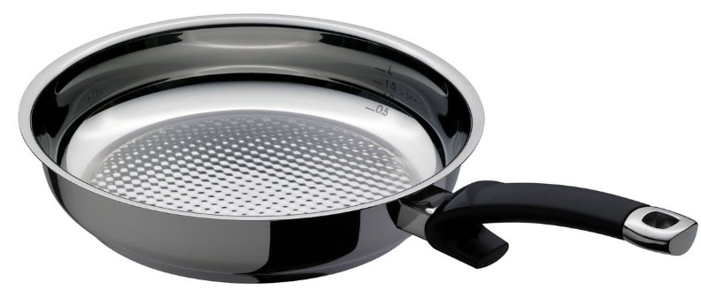 Crispy Steelux Comfort. Сковороды из серии Crispy Steelux Comfort, выполненные из высококачественной нержавеющей стали 18/10, идеальны для приготовления мяса и птицы с минимальным количеством масла. Гладкая поверхность этих сковородок – прочная и устойчивая к появлению царапин. Инкапсулированное дно Super Thermic равномерно рапсределяет тепло и подходит для индукционных плит. Дополнительное удобство в использовании обеспечивает мерная шкала, ободок для аккуратного слива и эргономичная безопасная ручка.