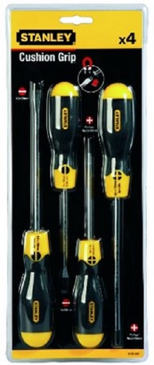 Набор отверток CUSHION GRIP 4шт Stanley 0-65-013 выполнен из высококачественных материалов для продолжительного срока службы. Рабочая часть изготовлена из хромованадиевой стали с хромовым покрытием для защиты от образования коррозии. Мягкий материал рукояток обеспечивает надежный захват и комфортное использование. Намагниченные жала удобны для применения в пазах и отверстиях.