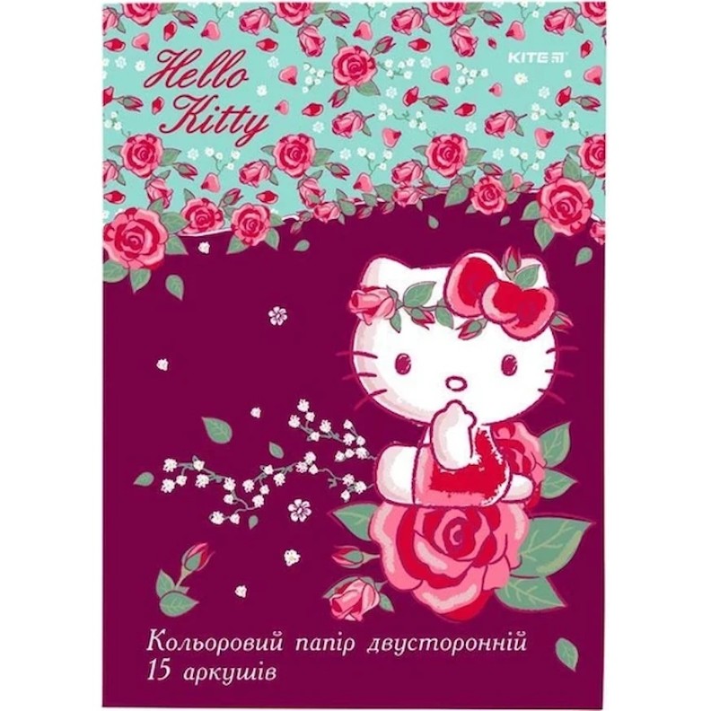 Бумага цветная двусторонняя Kite Hello Kitty 15 листов А4 в яркой картонной папке, с изображением Hello Kitty. Цветная бумага предназначена для создания цветных аппликаций на бумаге и картоне.