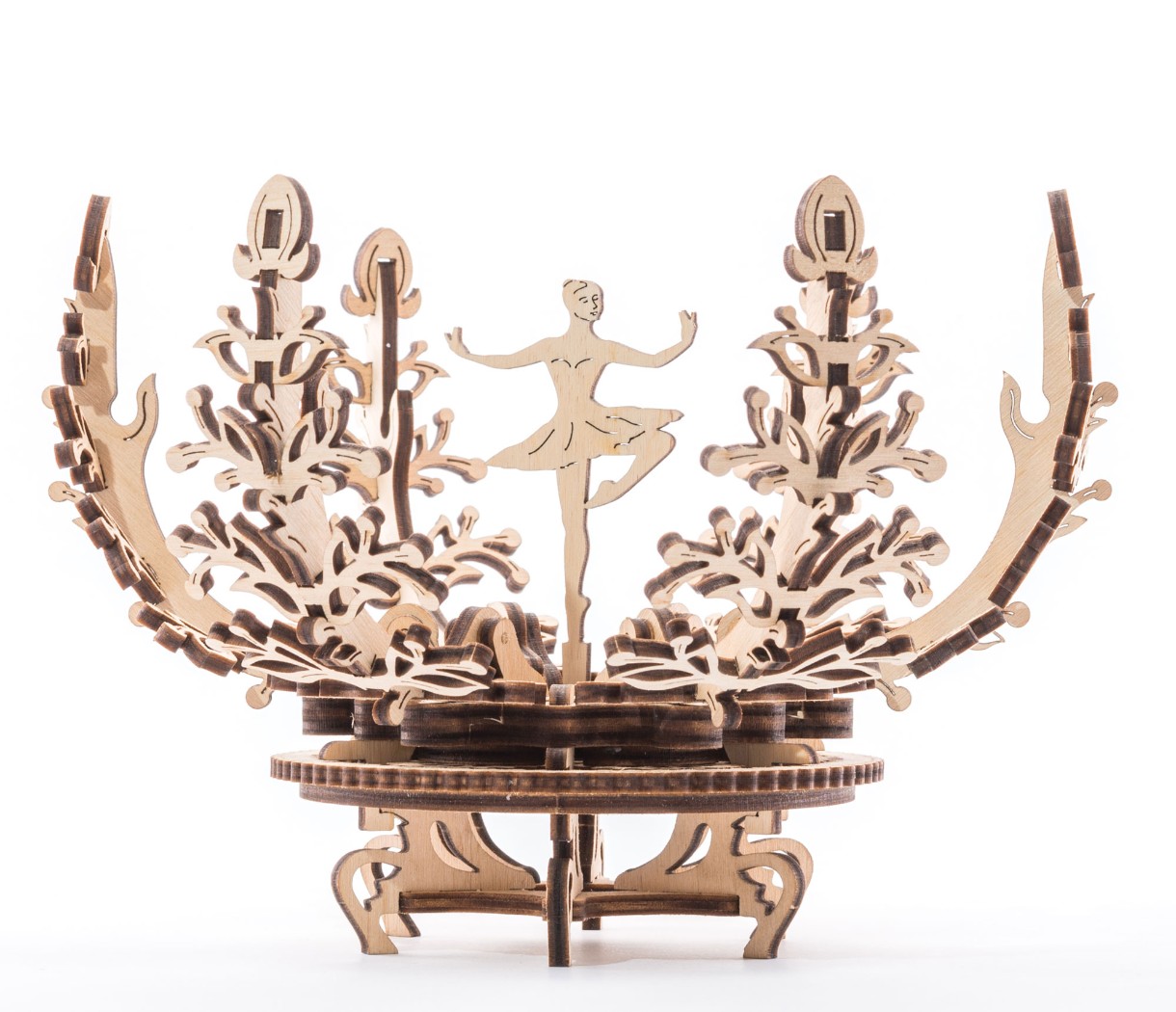 В комплект, входит фигурка балерины, изящно стоящая на одной ножке и поворачивающаяся вокруг своей оси по мере открывания лепестков.