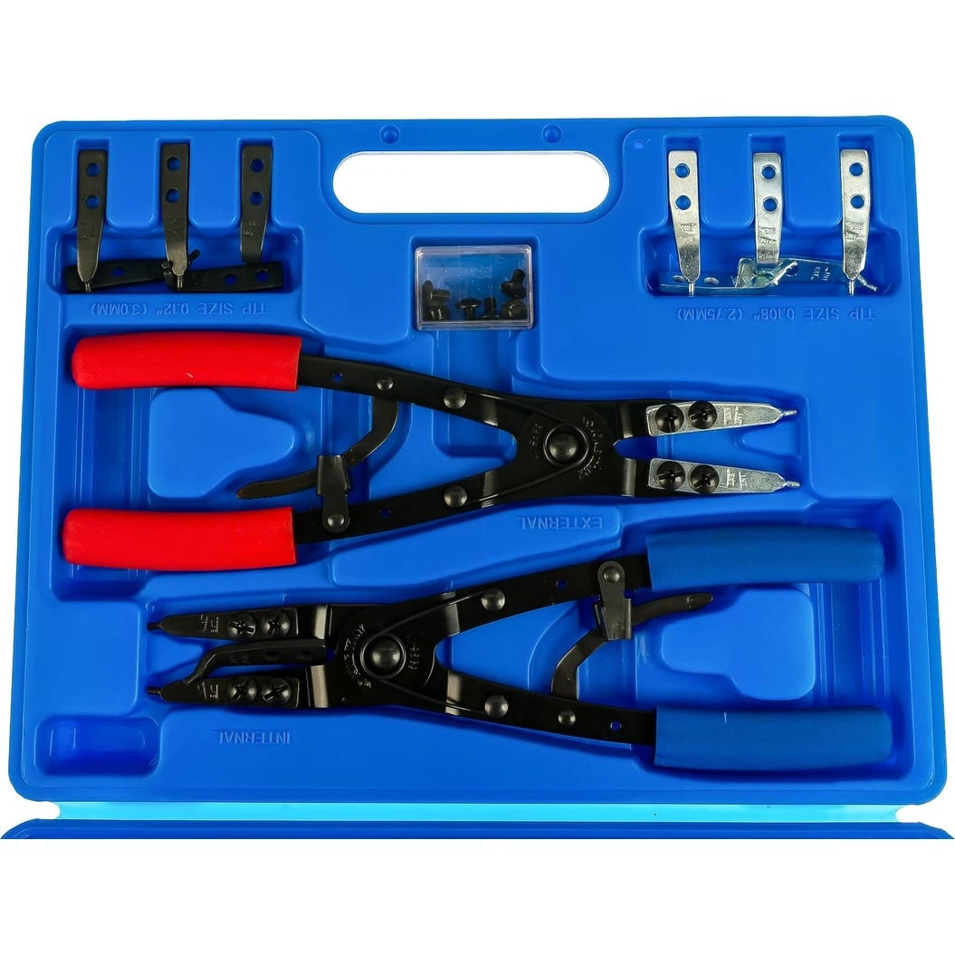 Набор съемников для стопорных колец 267мм, сменные насадки, кейс, 15шт KING TONY 45115PP подходит для работы в сфере ремонтных работ в различных мастерских, на производстве или в автосервисах. В комплекте представлены универсальные разборные приспособления с различными сменными насадками для возможности установки и демонтажа разнообразных стопорных колец.